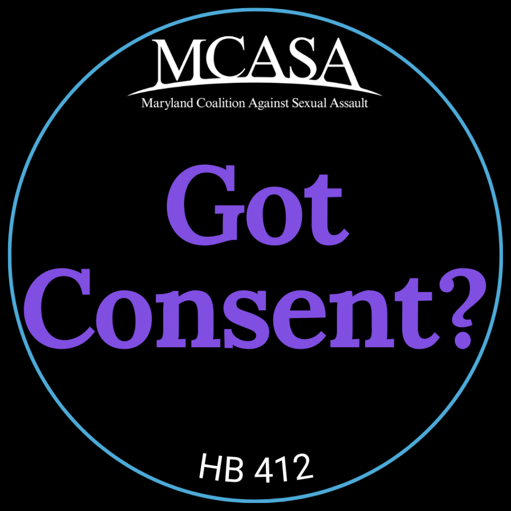 Sex without consent is rape, but Maryland’s law does not reflect this. Help pass House Bill 412 to change Maryland’s rape law by defining consent in statute and repealing language that focuses on whether a victim resisted. Join us in raising awareness through social media and contacting your local legislators asking them to vote favorably for HB 412.